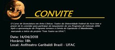 O curso de Artes Cênicas: Teatro, da Universidade Federal do Acre (Ufac), promove uma extensa agenda cultural para este ano, com o lançamento do seu Programa de Extensão-2018. O objetivo é oportunizar o acesso a bens artísticos de qualidade para a população de Rio Branco, com espetáculos, cursos livres e formação continuada para professores da rede de ensino do Estado.